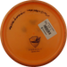 Käytetystä kiekosta löydät kuntoluokituksen lisäksi kolme tuotekuvaa (kansi, pohja ja siipi), painon (g) sekä tiedot tussimerkinnöistä.