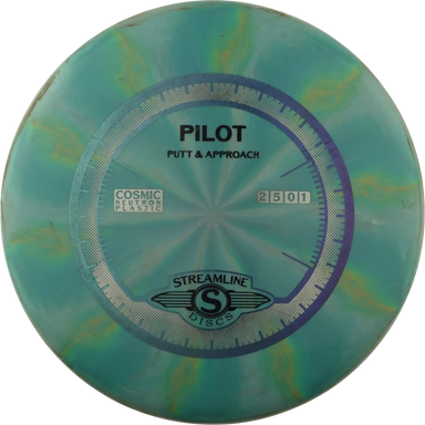 Pilot is a straight-flying putter from Streamline Discs, featuring a medium-depth profile, flat top, and a comfortably rounded nose. A small bead ...